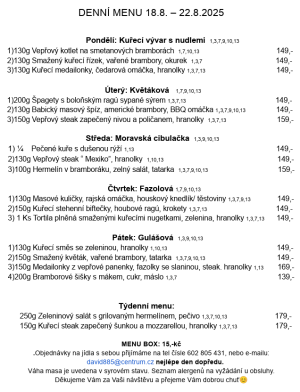 Denní menu v Obecní hospodě Babice nad Svitavou
