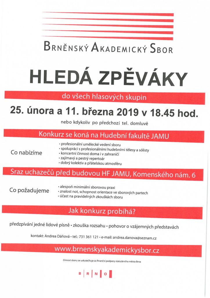BRNĚNSKÝ AKADEMICKÝ SBOR - hledá zpěváky