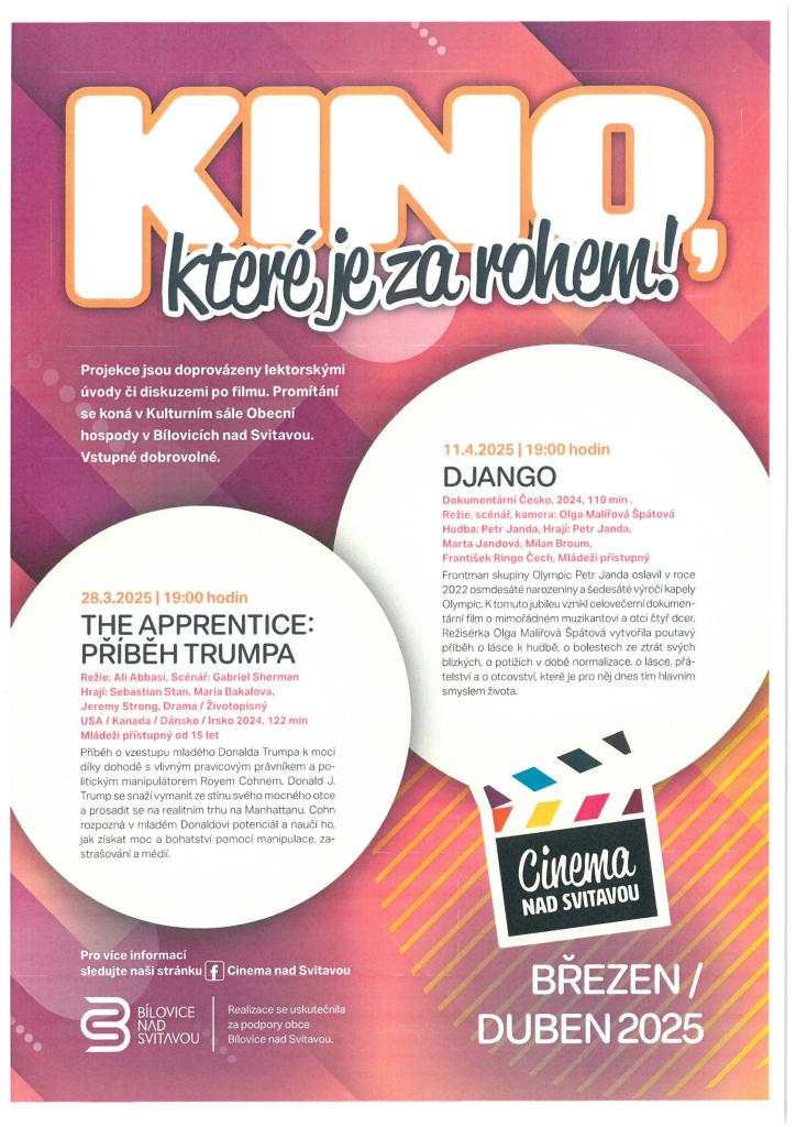 Projekce filmu The Apprentice: Příběh Trumpa proběhne v pátek 28.3.2025 v 19 hodin v Kulturním sále Obecní hospody v Bílovicích nad Svitavou.