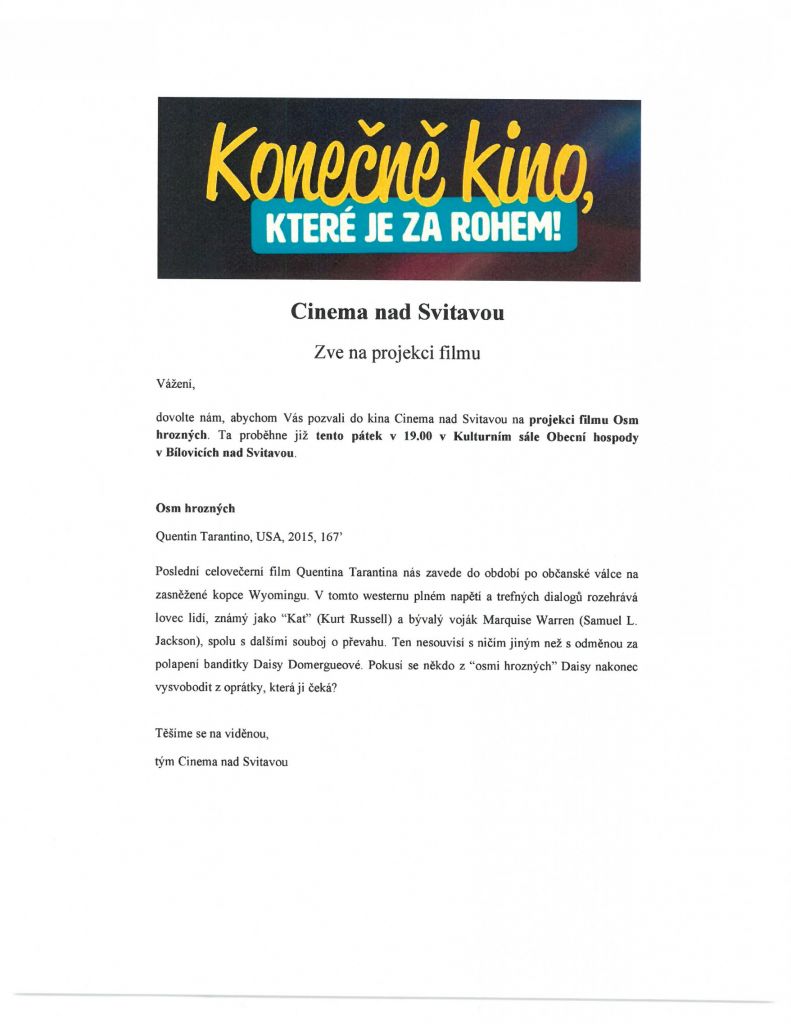 Cinema nad Svitavou - projekce filmu Osm hrozných