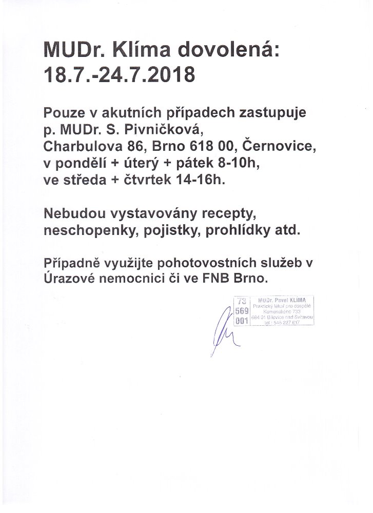 Dovolená - MUDr. Klíma