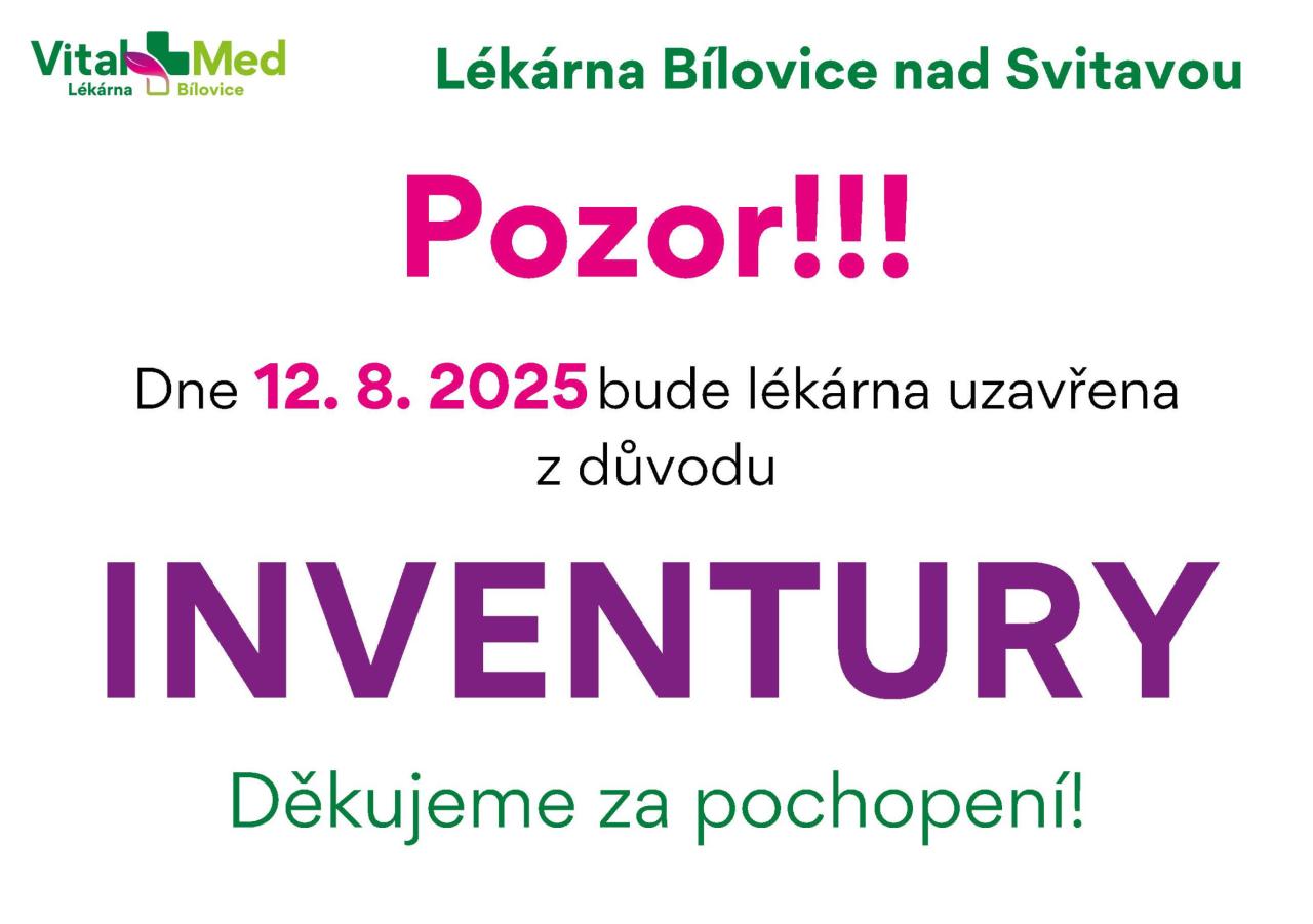 Lékárna v Bílovicích nad Svitavou - Inventura
