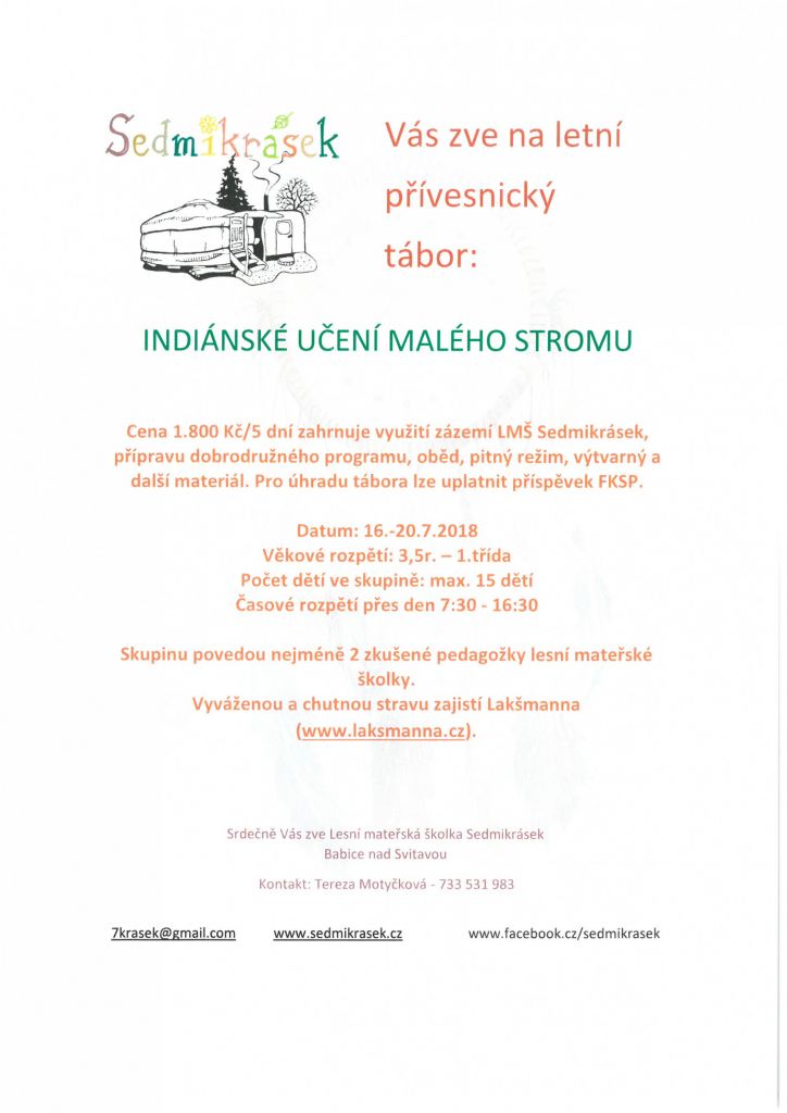 Lesní mateřská školka Sedmikrásek - letní přívesnický tábor