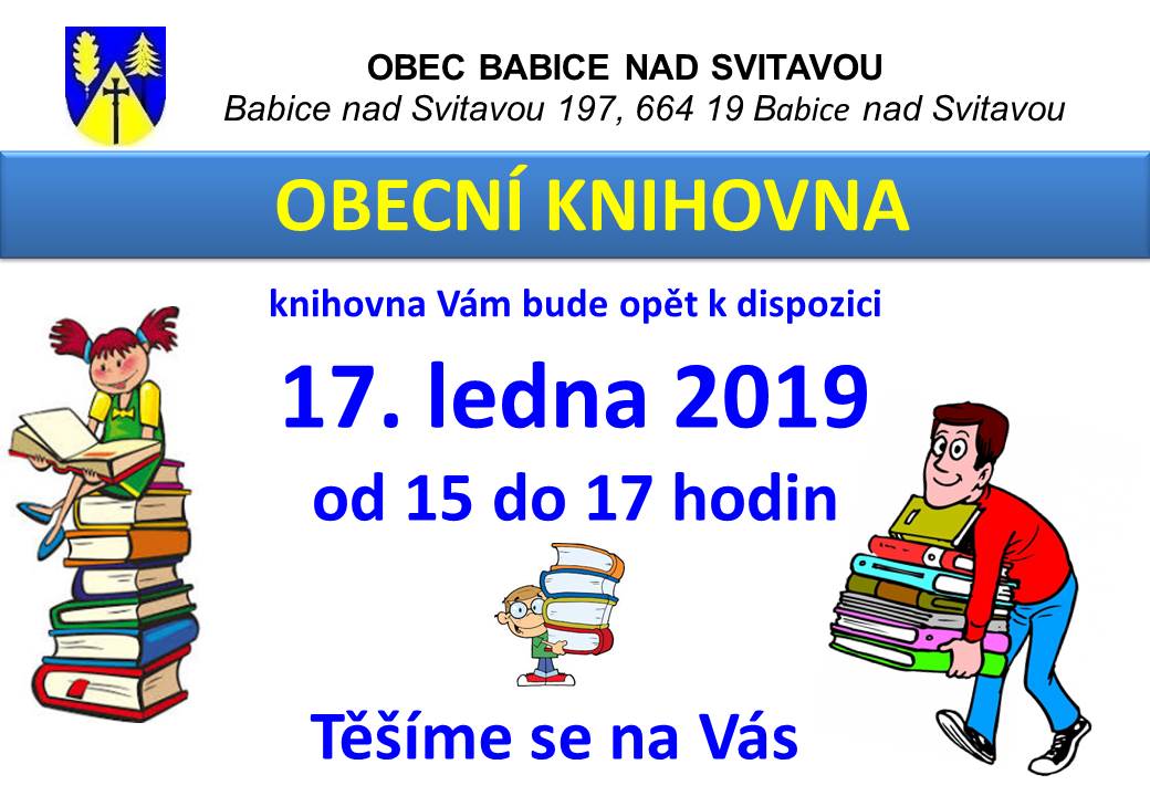 PROVOZ OBECNÍ KNIHOVNY BUDE OBNOVEN 17. LEDNA 2019. TĚŠÍME SE NA VÁS OD 15 DO 17 HODIN.