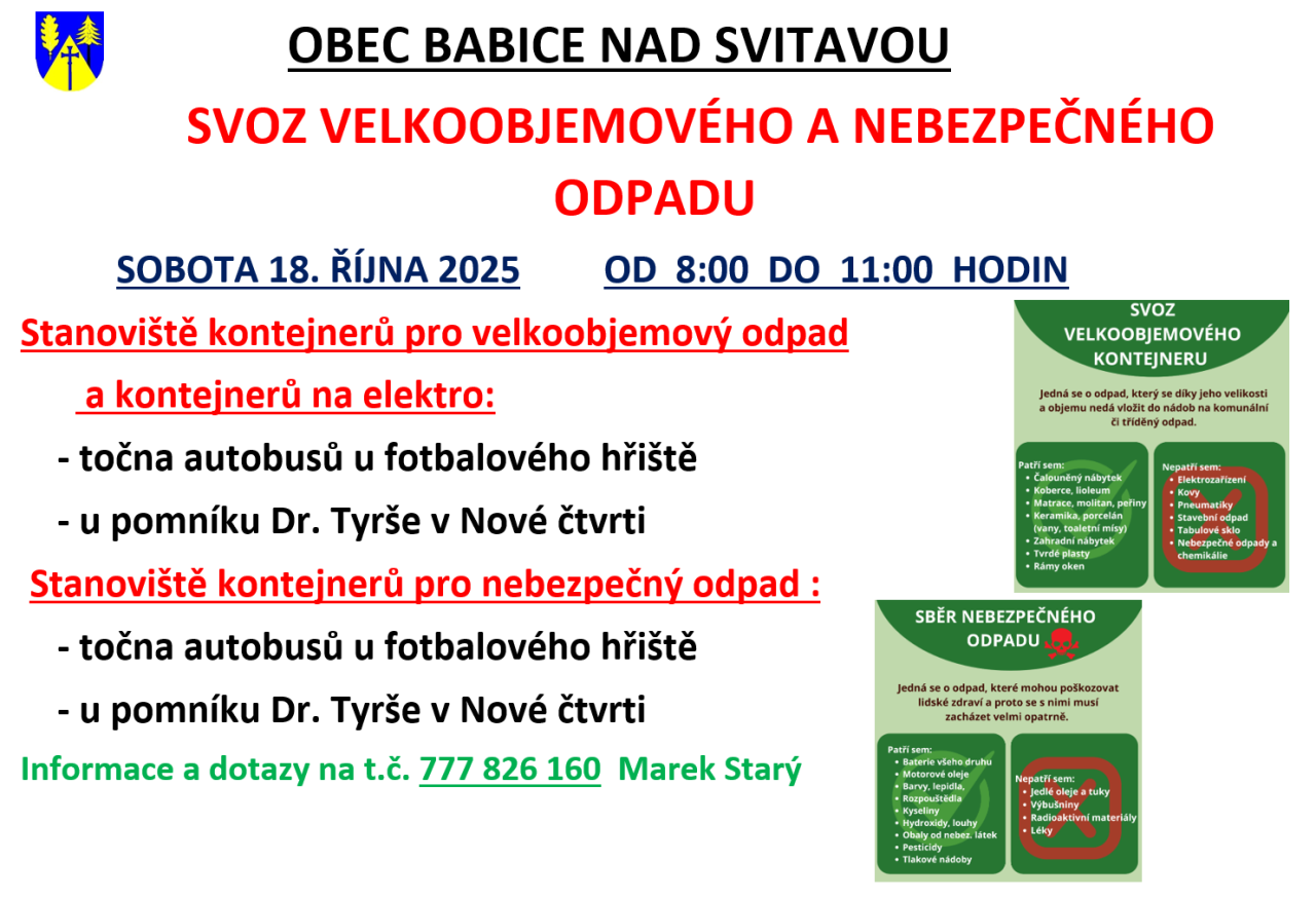 Svoz velkoobjemového a nebezpečného odpadu Babice nad Svitavou 1