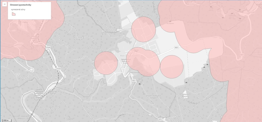 Níže přikládáme odkaz na mapovou aplikaci s přehledem zón, kde je pyrotechnika zakázána (kromě kategorie F1).