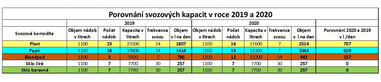 Vyjádření ke svozové firmě a kontejnerům na tříděný odpad